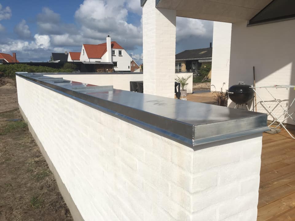Som standard har zink en blank overflade, og det patinerer med tiden, så det får en mere mat og naturlig farve. Udover at give et flot og naturligt udtryk, er zink også et meget holdbart og vedligeholdelsesfrit materiale. Det betyder også at zink er et godt valg i forhold til miljøet grundet dets holdbarhed og høje genanvendelighed.